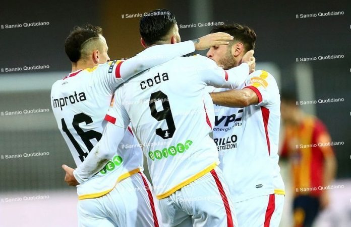 Il Lecce corre, il Benevento lo riprende e alla fine il distacco in classifica resta invariato. Niente sorpasso, dunque: alla ripresa del campionato, la Strega non va oltre il pari al ‘Via del Mare’, deve accontentarsi di un punto che non le permette di fare balzi in avanti in classifica, ma che almeno le consente di restare aggrappata al treno delle prime della classe. Una gara di pura sofferenza per la truppa giallorossa, ma anche una prova di pazienza e testa, quella che la formazione di Bucchi non perde mai, nonostante per larghi tratti del match si sia trovata in balia degli avversari. A evitare la sconfitta è un gol di Coda che cancella una giornata grigia con un preciso diagonale che non lascia scampo a Vigorito.