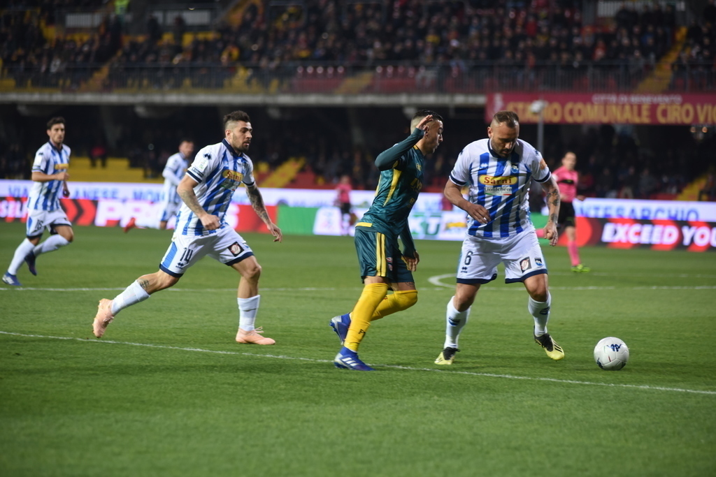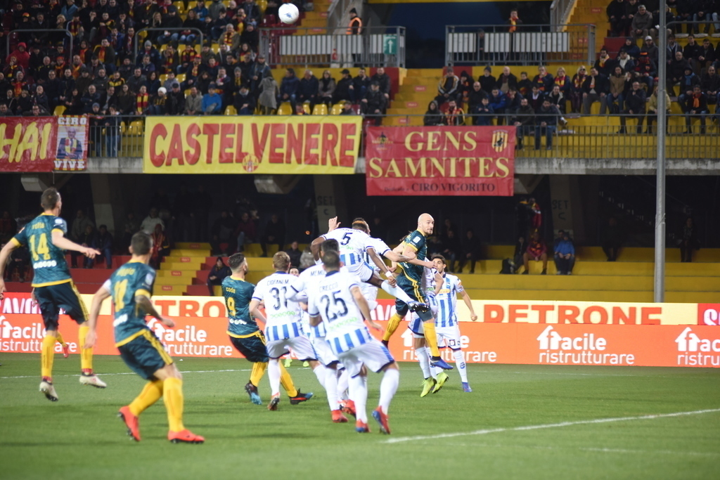 “Vado al Massimo, vado a gonfie vele”. Così cantava qualche anno fa Vasco Rossi, una strofa che da ieri sarà diventata la preferita di Cristian Bucchi. Sì, perché il suo Benevento è riuscito a stendere il Pescara grazie alle reti di Massimo Coda e di Massimo Volta, compiendo un nuovo, robusto passo in avanti in classifica. Il decimo risultato utile di fila, il terzo successo casalingo consecutivo spalancano alla Strega un altro scorcio di paradiso: grazie al pari del Brescia e alla sconfitta del Palermo, infatti, i giallorossi si ritrovano meritatamente a un passo dal cielo al termine di un turno infrasettimanale che, come da previsioni, scuote l’alta classifica. Il Benevento si prende il secondo posto, riduce le distanze anche dalla vetta, recupera punti pure su un’altra temibile concorrente come il Verona: se non è la serata perfetta, poco ci manca. Continua a correre la truppa sannita, con il mirino sempre ben puntato sul traguardo finale di questa maratona che si annuncia entusiasmante.
