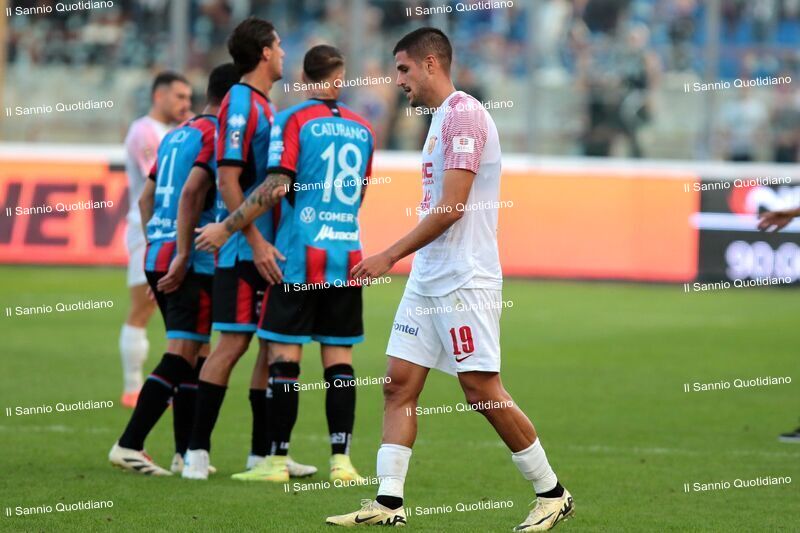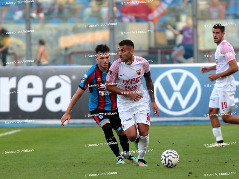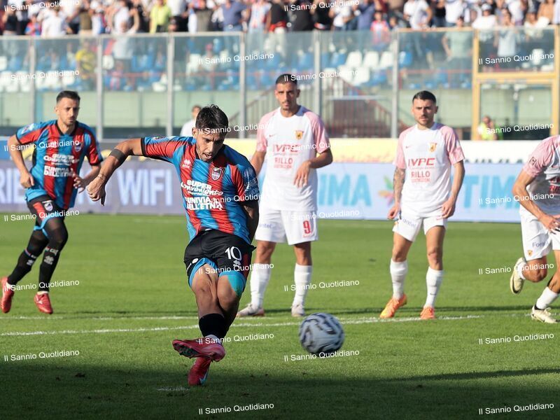 Il Benevento non riesce a cambiare passo. La formazione giallorossa deve chinare nuovamente il capo e incassare contro il Catania la terza sconfitta nelle sei gare disputate fin qui in trasferta. Un ko (1-0 il risultato finale) che ha fatto perdere il comando della classifica a Maita e compagni, sebbene l’esito del faccia a faccia del ‘Massimino’ non abbia rispettato il disegno di una gara equilibrata, decisa da un episodio che inevitabilmente ha lasciato un pesante senso di fastidio nello stomaco della Strega, condannata da un rigore che definire discutibile può sembrare riduttivo. A gettare ombre sulla sconfitta rimediata dalla Strega e, per certi versi, sporcare il successo che è valso il sorpasso del Catania è stato il calcio di rigore assegnato al minuto 43 ai padroni di casa.