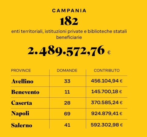 Dopo le verifiche formali e l’istruttoria tecnica delle istanze ricevute, secondo le modalità previste dal bando, sono state ammesse al contributo 4.522 domande da enti territoriali, istituzioni private e biblioteche statali.