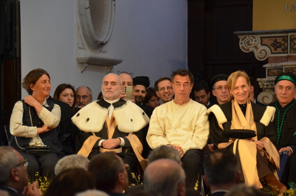 Emozione e partecipazione per la cerimonia di inaugurazione dell’anno accademico 2025/2026 dell’Università degli Studi del Sannio (28esimo dalla fondazione), svoltosi nella cornice dell’Auditorium Sant’Agostino di Benevento. Tema centrale i diritti umani e la dignità della persona, trattati anche dal regista Matteo Garrone nella sua lezione magistrale ‘Principio speranza: cinema e diritti umani’. Valori richiamati nel corso del suo intervento dalla rettrice Moreno che ha onorato la memoria di “Giulio Regeni, la sua vicenda ci ricorda di sostenere verità e giustizia, ricerca valore di libertà. Tema e responsabilità che sentiamo sui Diritti umani e sulla dignità persona, valori che assumono significato ancora più profondo oggi” ed espresso solidarietà a studenti e professori delle università dei Paesi travolti dalla guerra. Presenti alla cerimonia rettori o prorettori di tutte le accademie pubbliche campane e del Mezzogiorno, a segnare in modo plastico la crescita e l’integrazione di Unisannio nel sistema accademico italiano.