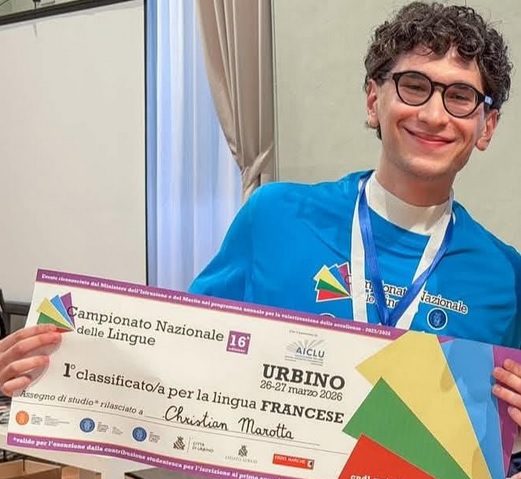 C’è un pezzo di provincia di Benevento che brilla nel panorama accademico nazionale grazie allo straordinario talento di un giovane concittadino. Christian Marotta si è aggiudicato il primo premio assoluto per la Lingua Francese alla XVI edizione del prestigioso Campionato Nazionale delle Lingue, evento di punta organizzato dall’Università degli Studi di Urbino “Carlo Bo”. Un successo che definire eccezionale è riduttivo: lo studente, frequentante la classe 5 E (indirizzo ESABAC) presso il Liceo Statale “Alessandro Manzoni” di Caserta, è riuscito a svettare su una platea di oltre 30.000 partecipanti provenienti da ogni angolo d’Italia, portando alto il nome della sua comunità e della sua scuola.