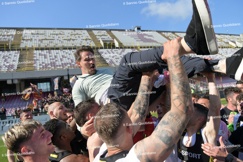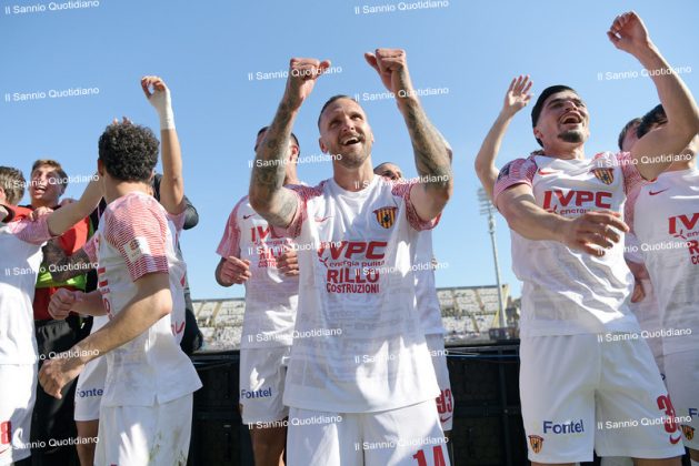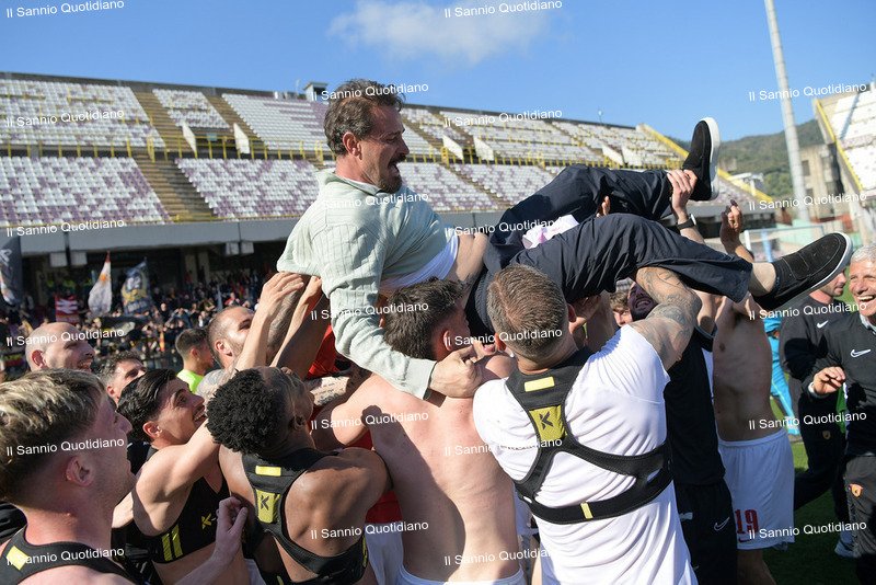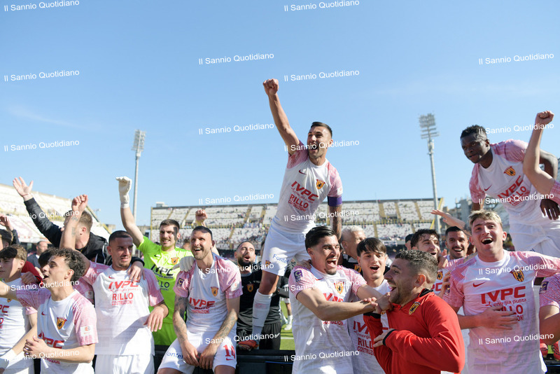 Ci sono partite che non finiscono con un triplice fischio. Restano aperte, sospese nell’aria, come certi giorni che si allungano oltre il buio e si incastrano nella memoria. Non passano: si fermano addosso, entrano nella pelle e diventano storia. Il 6 aprile 2026 è uno di quei giorni. Una data che per il Benevento resterà per sempre, perché a quasi dieci anni dalla prima promozione in Serie B, la Strega concede il bis e torna dove ha sempre sognato di essere. La B…enedizione della matematica arriva a Pasquetta, nel derby dell’Arechi contro la Salernitana, cosa che si presterebbe bene a semplici letture evocative. Ridurre tutto a una suggestione però sarebbe ingeneroso, perché questo traguardo ha il sapore della fatica vera, delle delusioni ingoiate, delle domeniche storte e delle speranze ricostruite pezzo dopo pezzo, quando tutti vedevano solo macerie e tutto sembrava perso.