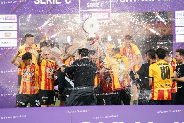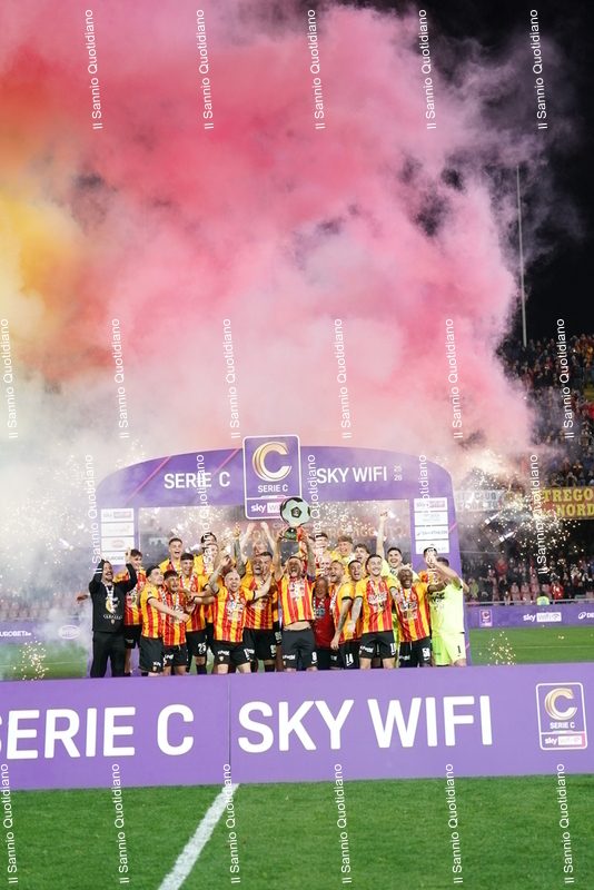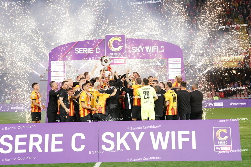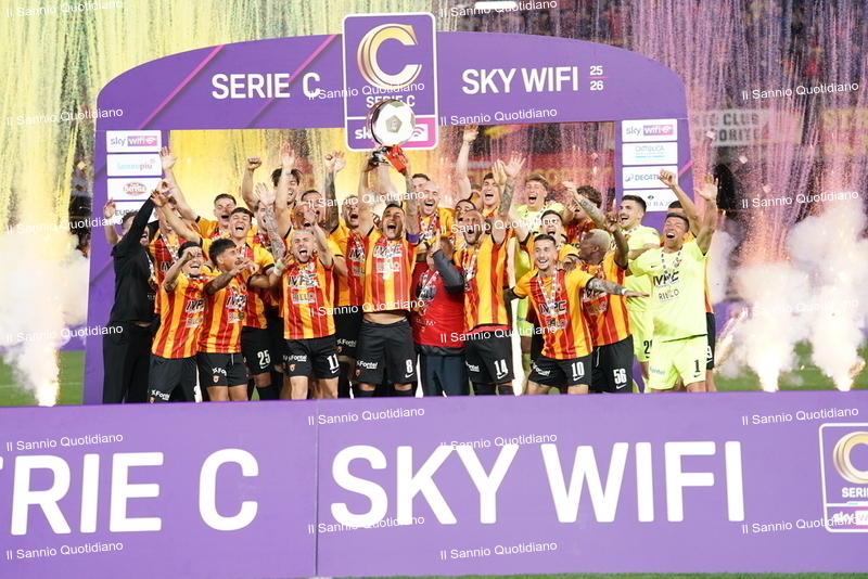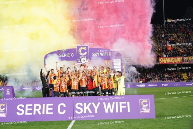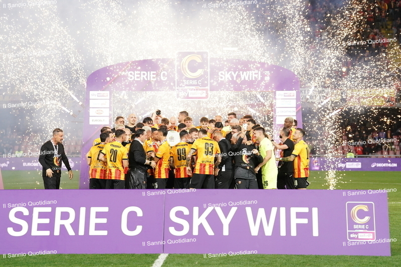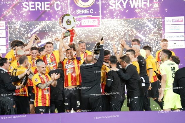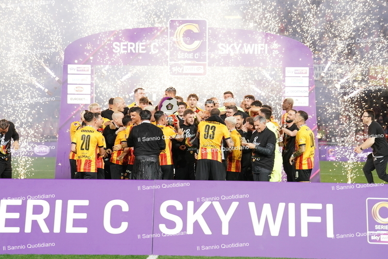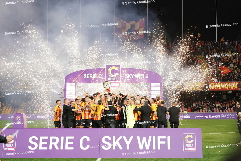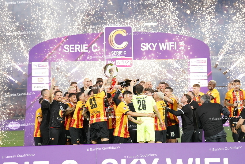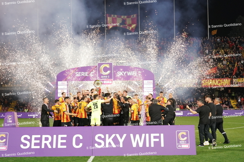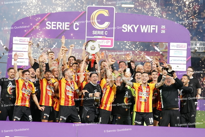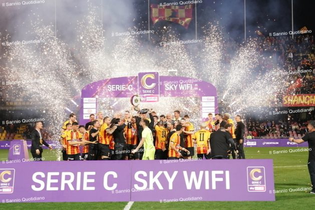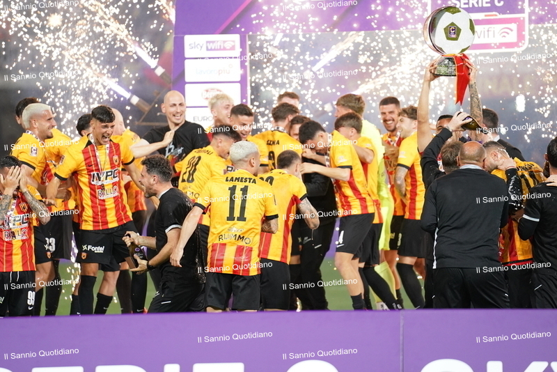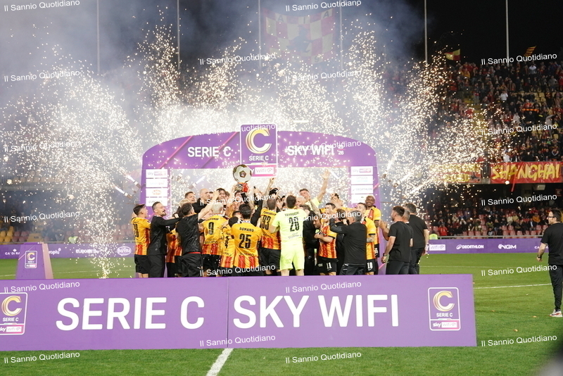 La serata più bella di tutte. Quella che trasforma, finalmente, il sogno in realtà. La coppa al cielo, gli occhi lucidi, i sorrisi infiniti: il Benevento ha vinto il suo girone di C e torna ad accarezzare, dopo tre stagioni lunghissime, la Serie B. Il “Vigorito” come teatro di una notte attesa a lungo, rincorsa tra gli ostacoli di un campionato che sa riservare insidie, voli pindarici, cambi di scenario. E che regala, alla fenice giallorossa, le ceneri da cui risorgere.