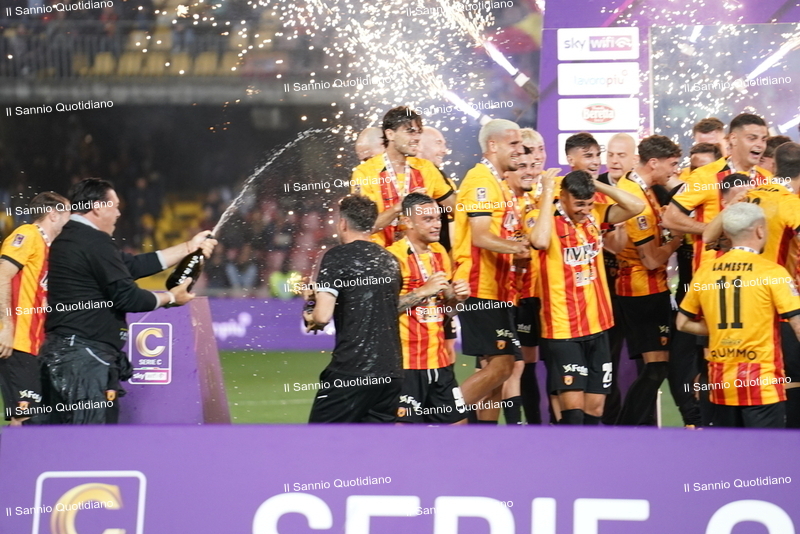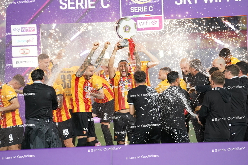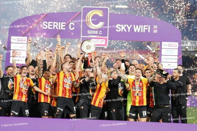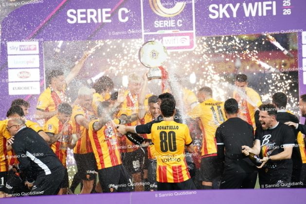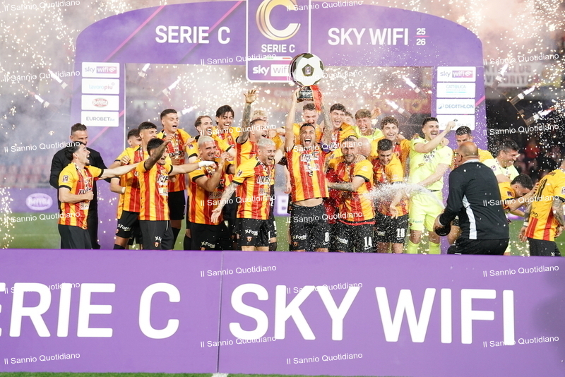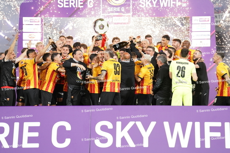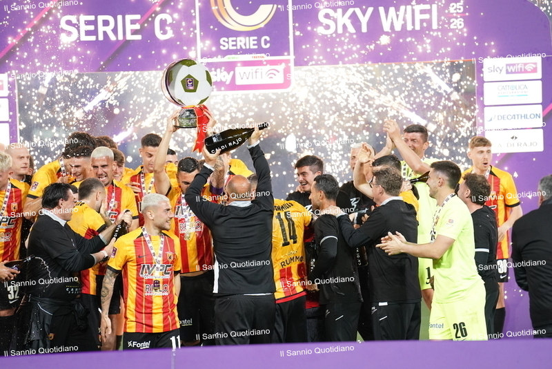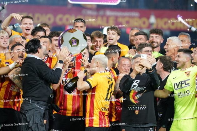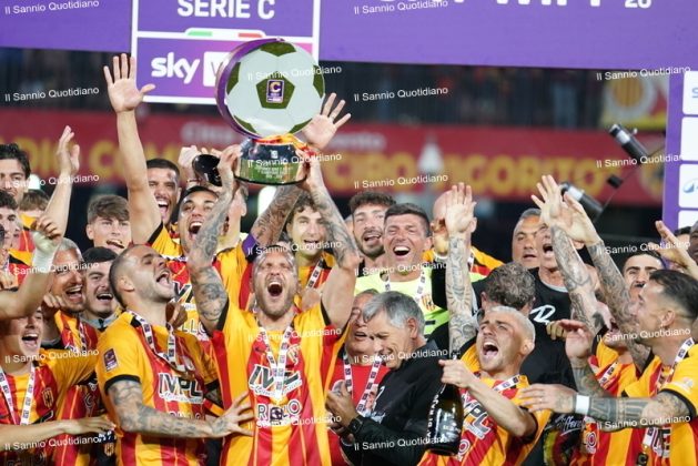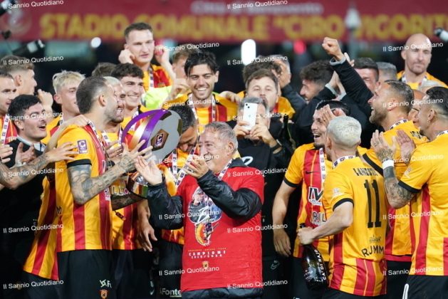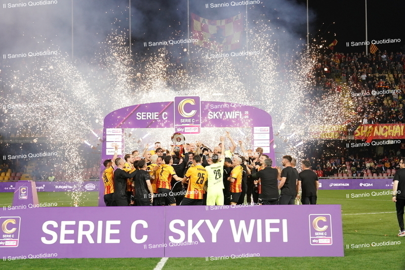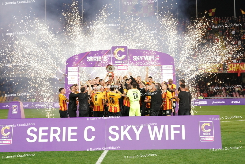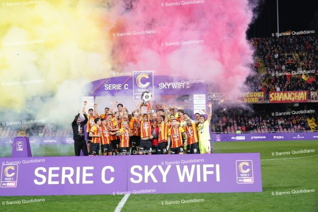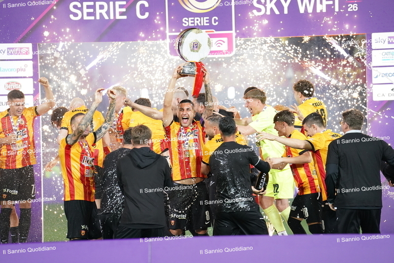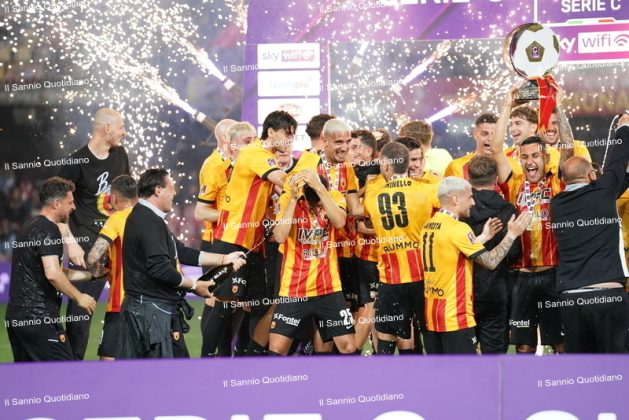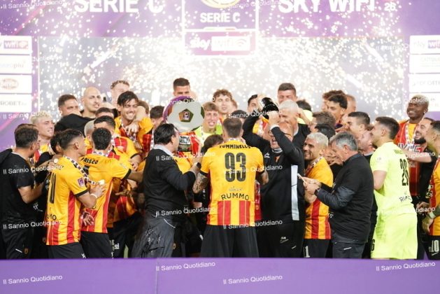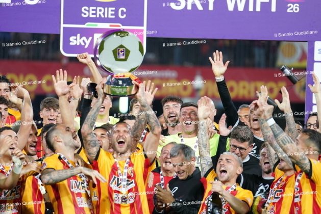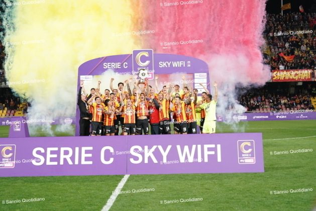 La serata più bella di tutte. Quella che trasforma, finalmente, il sogno in realtà. La coppa al cielo, gli occhi lucidi, i sorrisi infiniti: il Benevento ha vinto il suo girone di C e torna ad accarezzare, dopo tre stagioni lunghissime, la Serie B. Il “Vigorito” come teatro di una notte attesa a lungo, rincorsa tra gli ostacoli di un campionato che sa riservare insidie, voli pindarici, cambi di scenario. E che regala, alla fenice giallorossa, le ceneri da cui risorgere.
