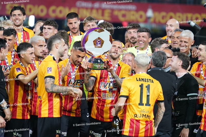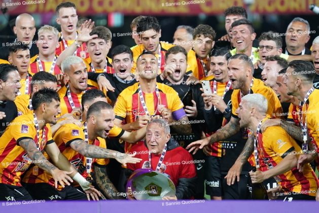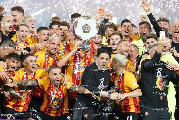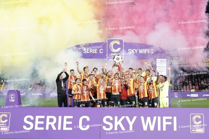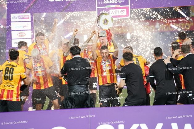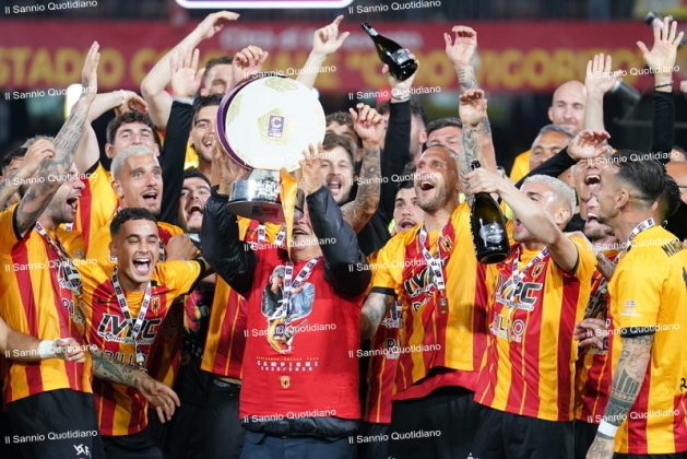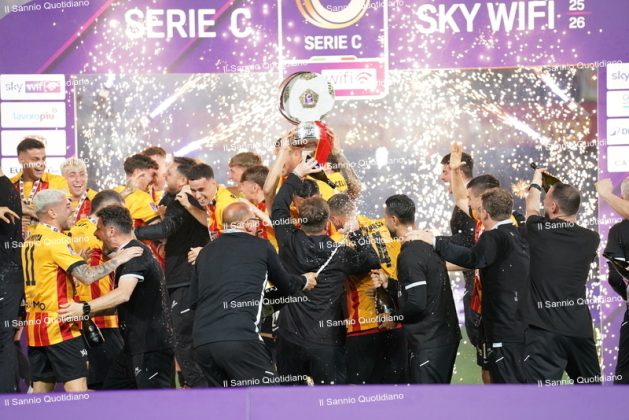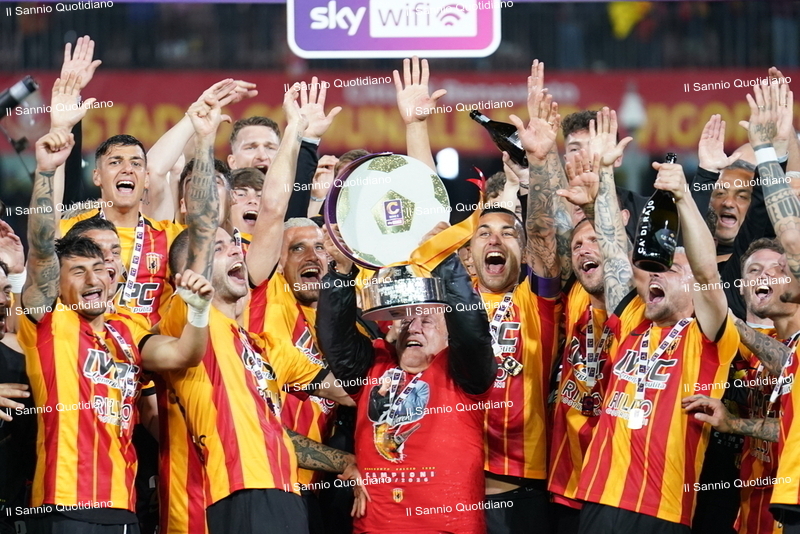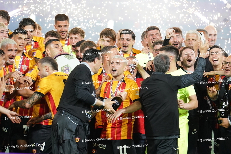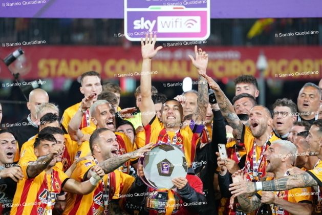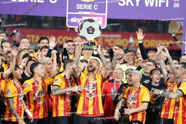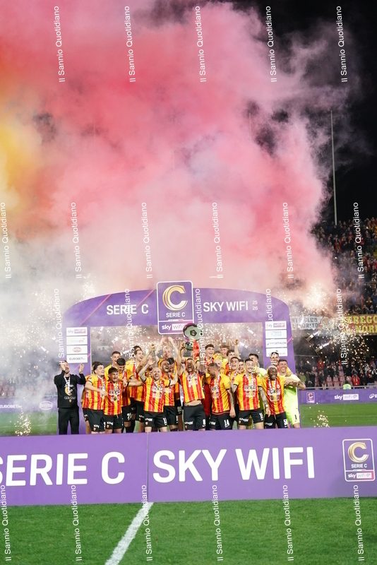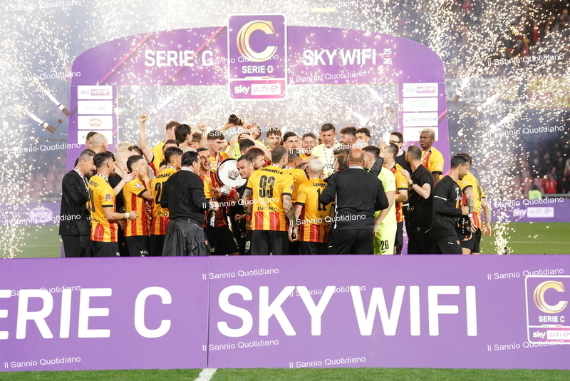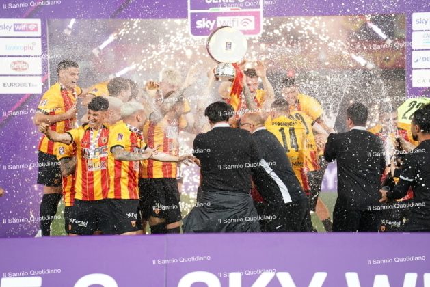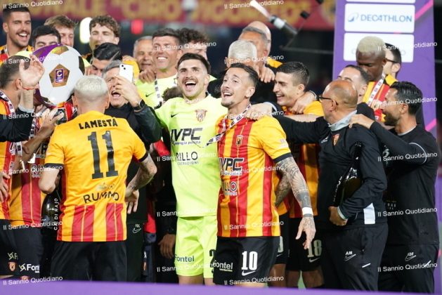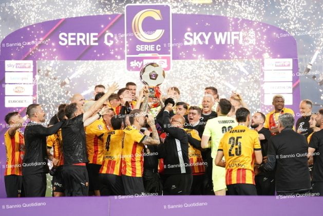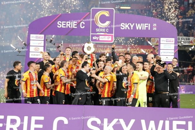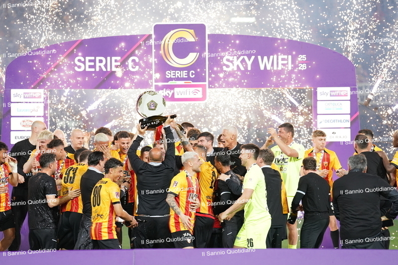 La serata più bella di tutte. Quella che trasforma, finalmente, il sogno in realtà. La coppa al cielo, gli occhi lucidi, i sorrisi infiniti: il Benevento ha vinto il suo girone di C e torna ad accarezzare, dopo tre stagioni lunghissime, la Serie B. Il “Vigorito” come teatro di una notte attesa a lungo, rincorsa tra gli ostacoli di un campionato che sa riservare insidie, voli pindarici, cambi di scenario. E che regala, alla fenice giallorossa, le ceneri da cui risorgere.
