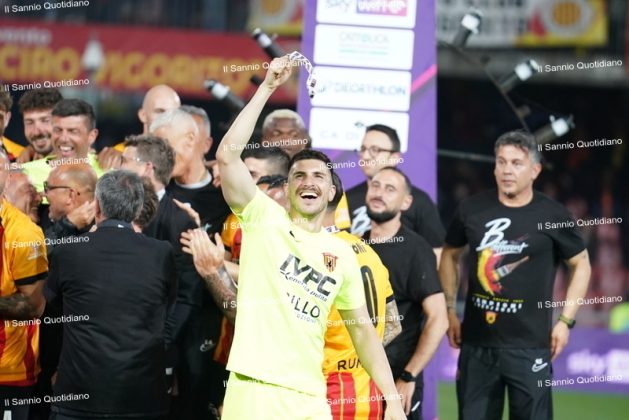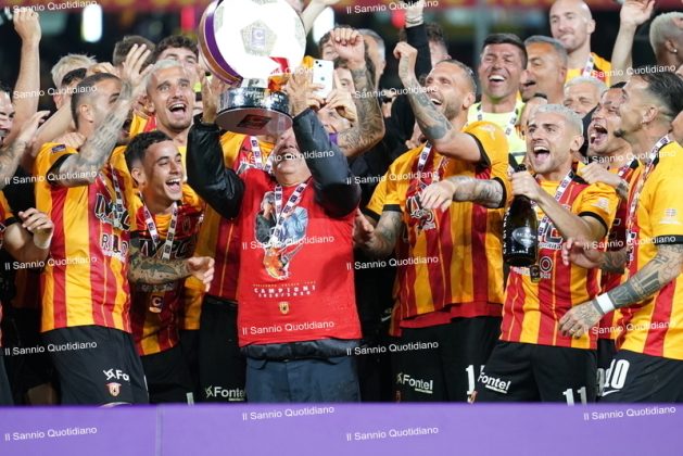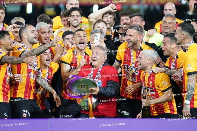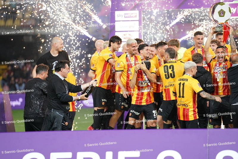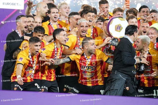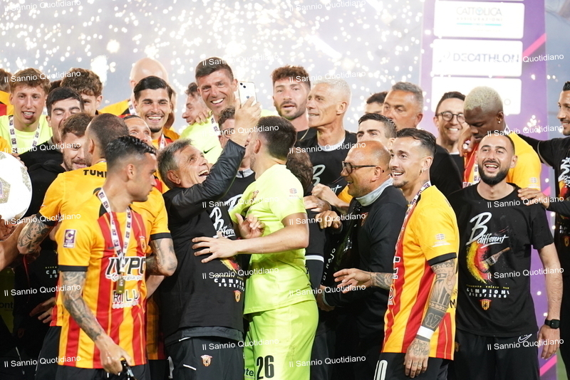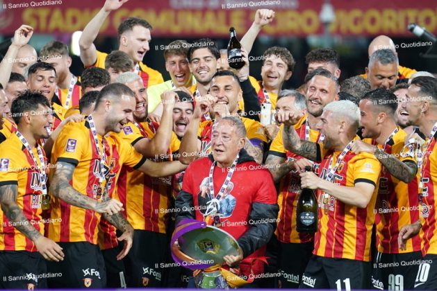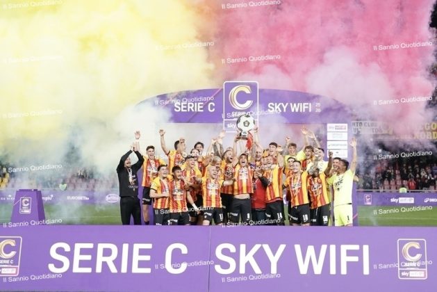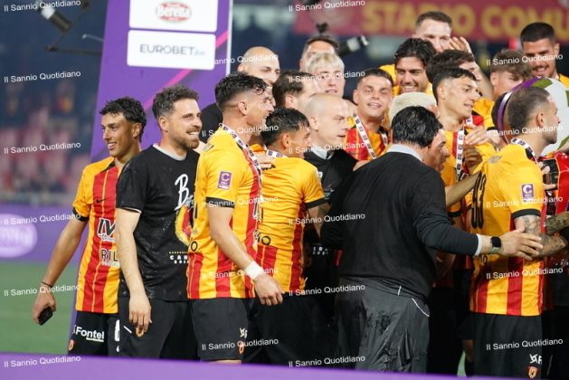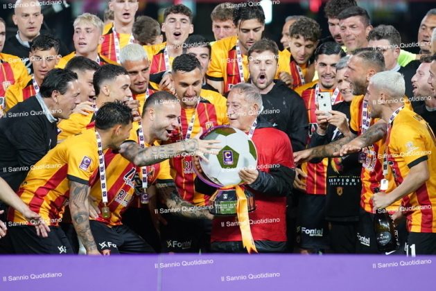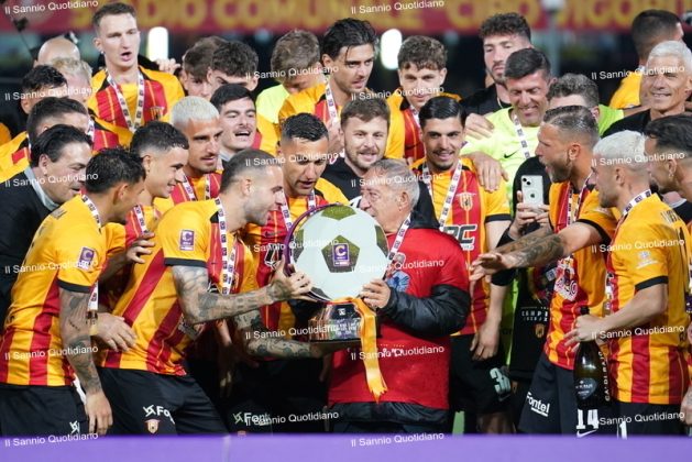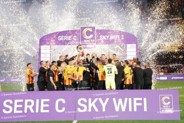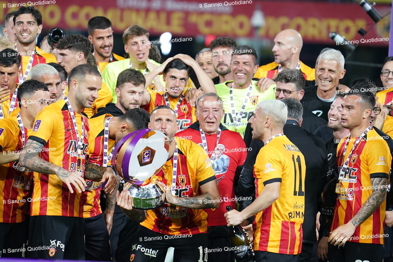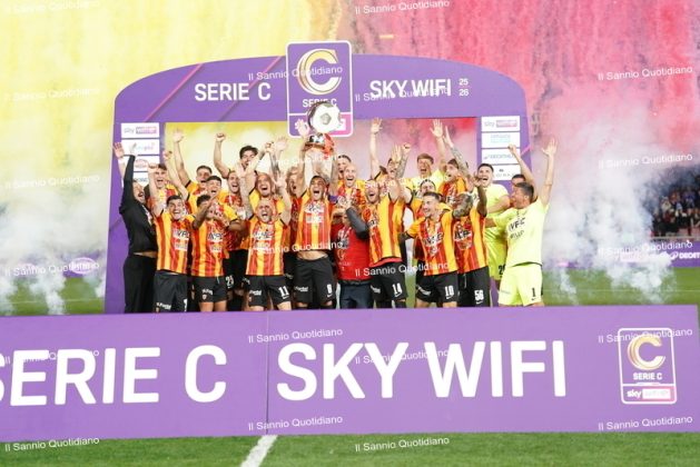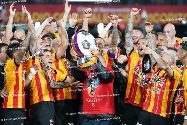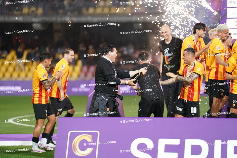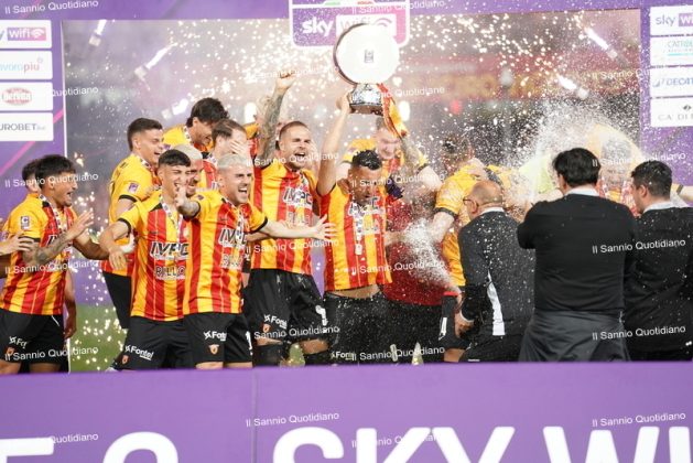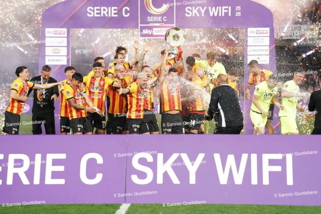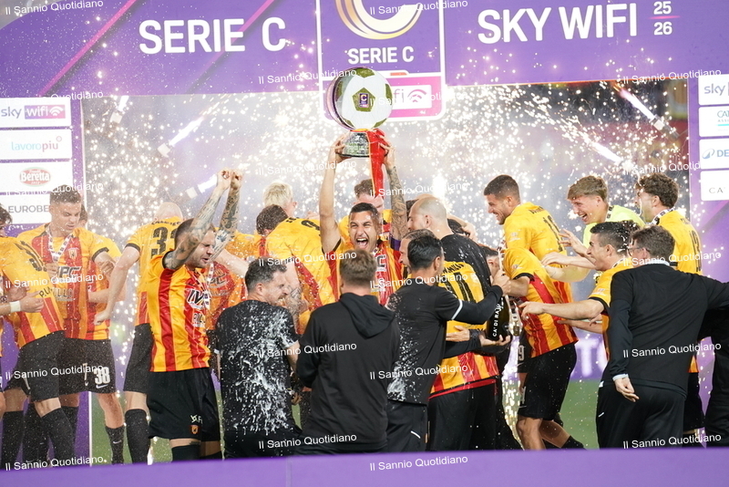 La serata più bella di tutte. Quella che trasforma, finalmente, il sogno in realtà. La coppa al cielo, gli occhi lucidi, i sorrisi infiniti: il Benevento ha vinto il suo girone di C e torna ad accarezzare, dopo tre stagioni lunghissime, la Serie B. Il “Vigorito” come teatro di una notte attesa a lungo, rincorsa tra gli ostacoli di un campionato che sa riservare insidie, voli pindarici, cambi di scenario. E che regala, alla fenice giallorossa, le ceneri da cui risorgere.