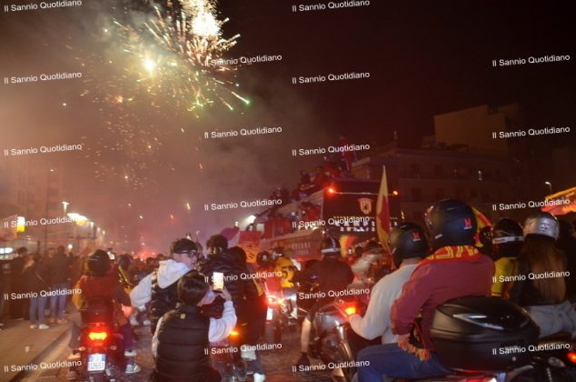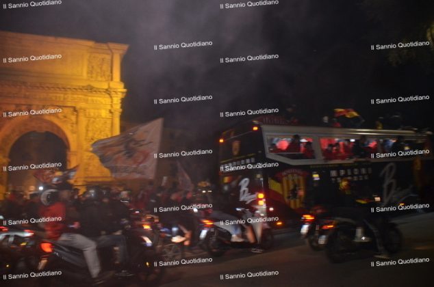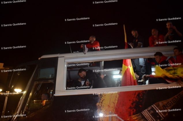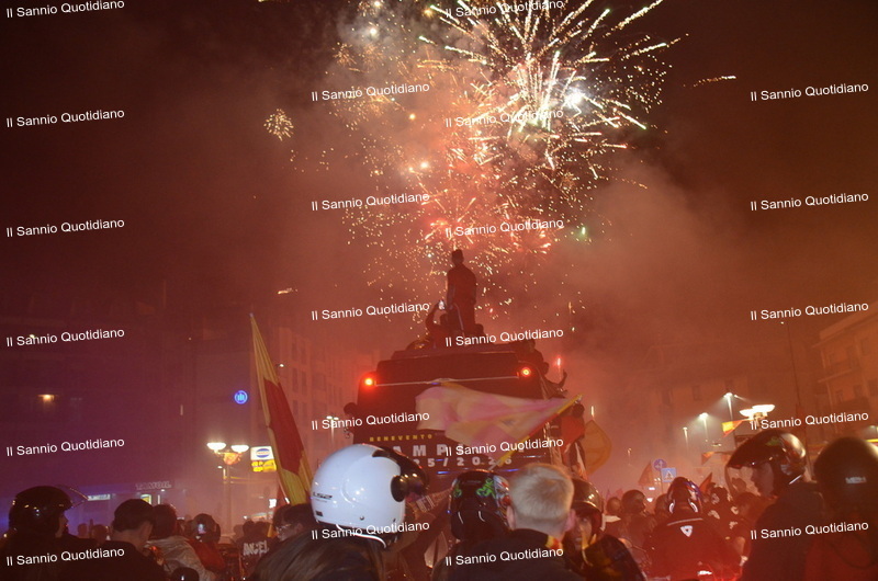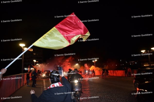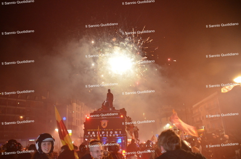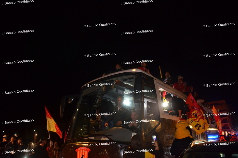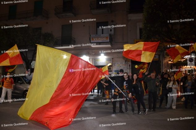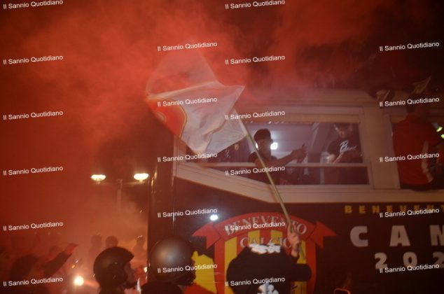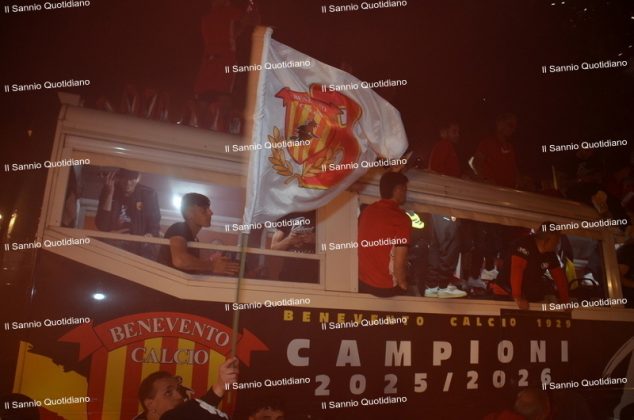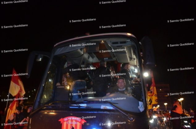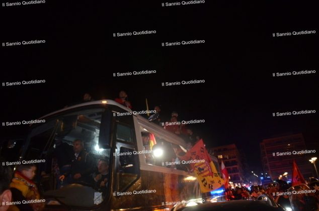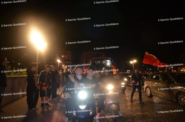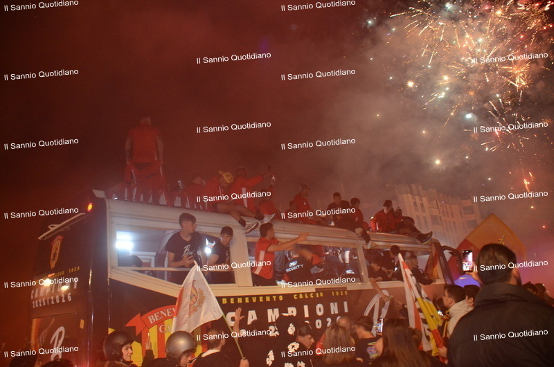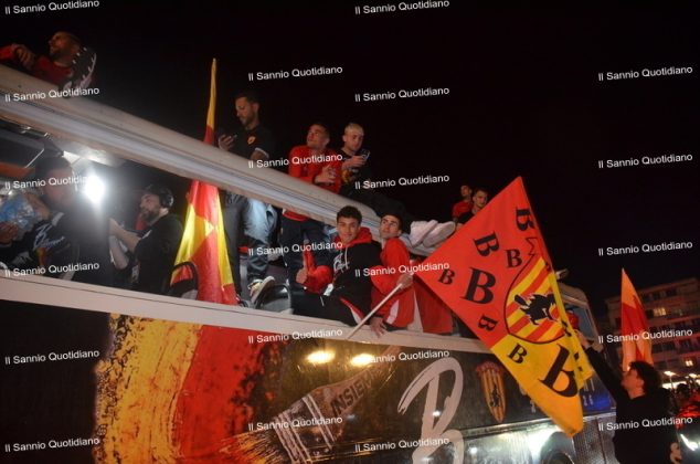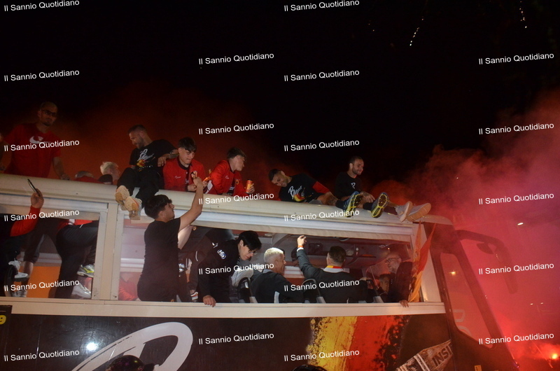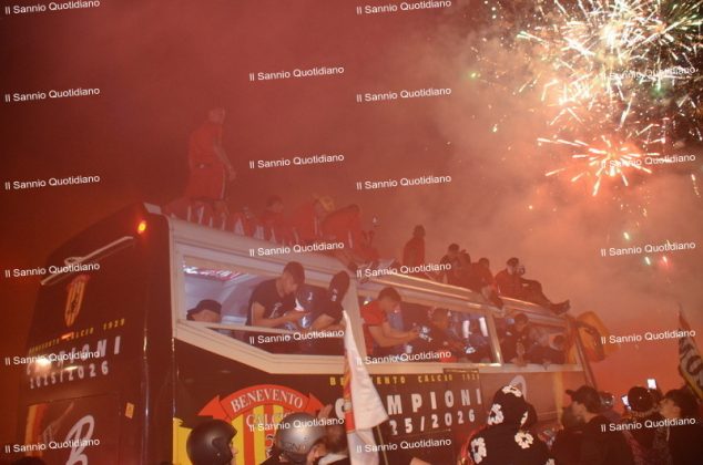 Un giorno atteso a lungo, tra le mille sfumature che hanno attraversato i volti di questi anni. Speranze, lacrime, sensazioni positive e drammi inconsolabili. L’entusiasmo di tutto il “Vigorito” nella sua serata più bella: è festa giallorossa, in uno stadio finalmente gremito e accomunato da una sola passione, quella per la Strega. Una serata lunghissima per i campioni del girone C, aperta dal primo abbraccio tra il presidente Oreste Vigorito e i suoi tifosi, nel giro di campo del patron giallorosso per salutare i sostenitori della Strega, tra gli applausi di tutto lo stadio.
