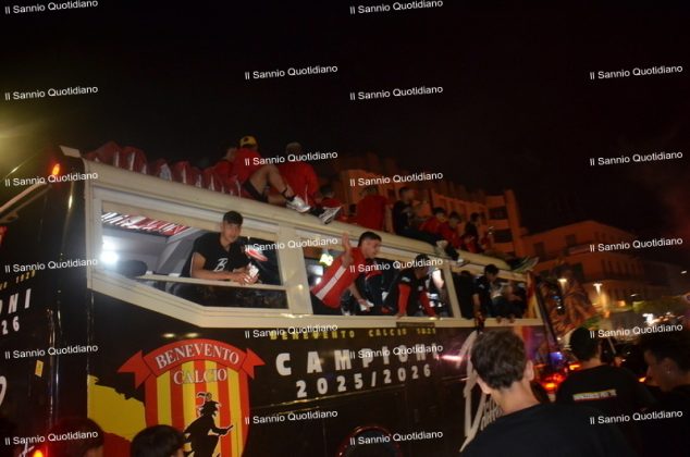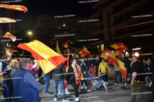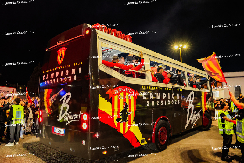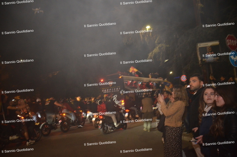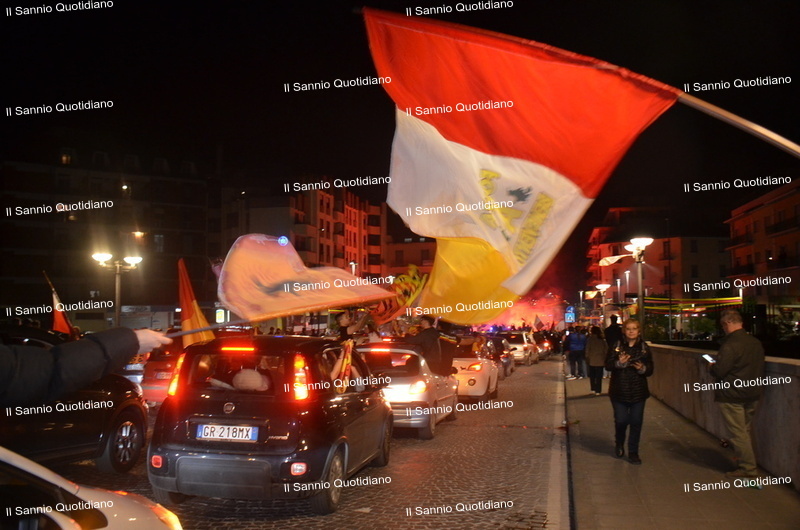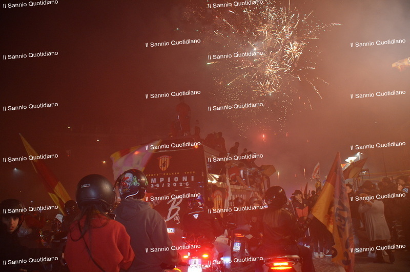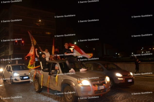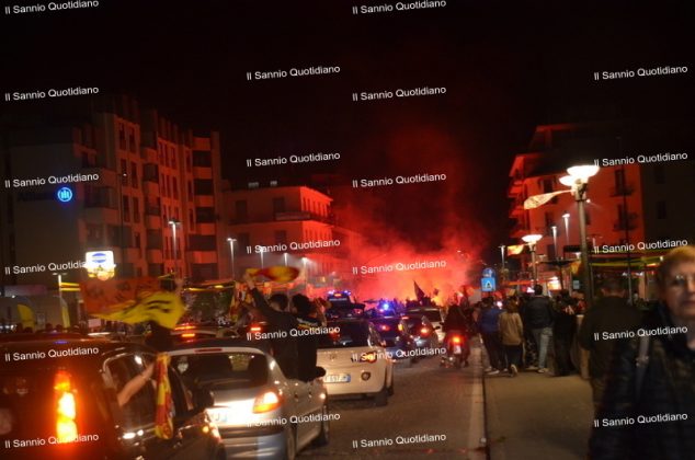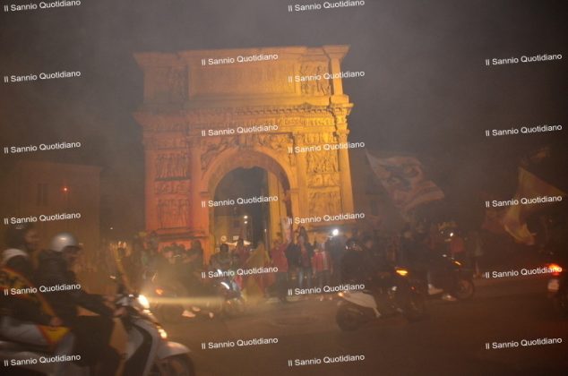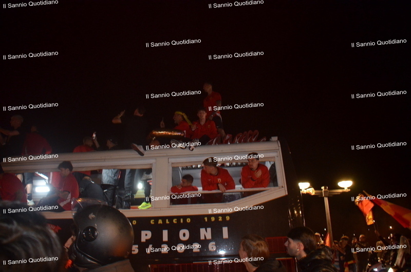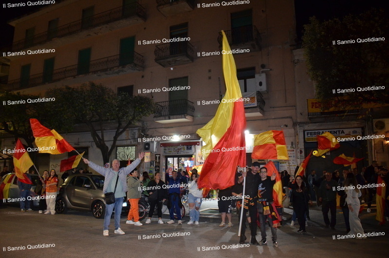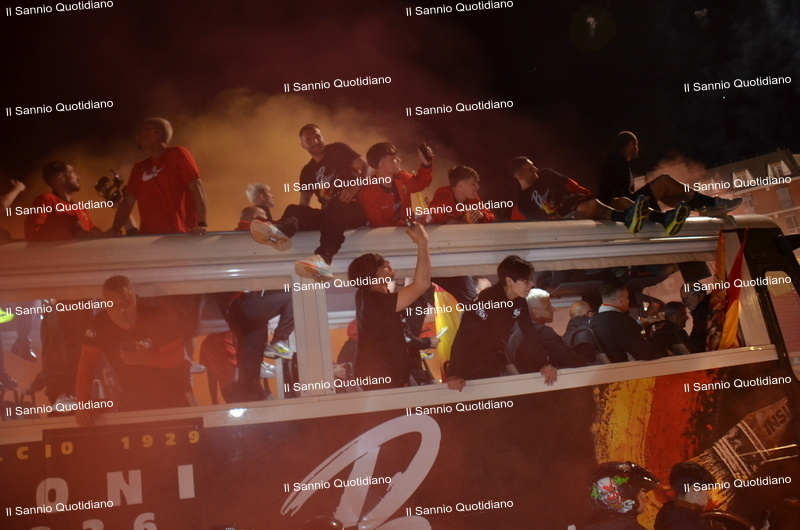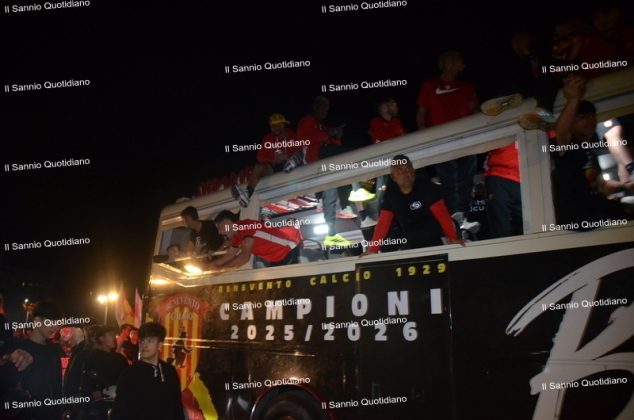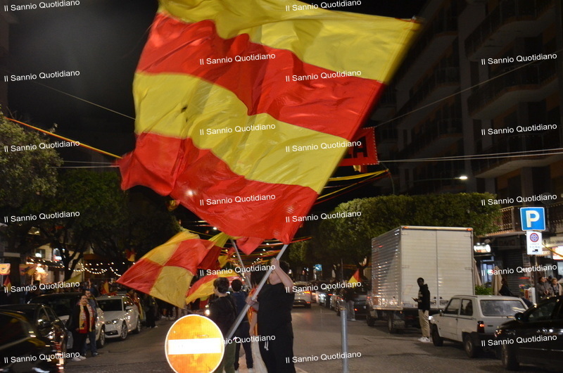 Un giorno atteso a lungo, tra le mille sfumature che hanno attraversato i volti di questi anni. Speranze, lacrime, sensazioni positive e drammi inconsolabili. L’entusiasmo di tutto il “Vigorito” nella sua serata più bella: è festa giallorossa, in uno stadio finalmente gremito e accomunato da una sola passione, quella per la Strega. Una serata lunghissima per i campioni del girone C, aperta dal primo abbraccio tra il presidente Oreste Vigorito e i suoi tifosi, nel giro di campo del patron giallorosso per salutare i sostenitori della Strega, tra gli applausi di tutto lo stadio.