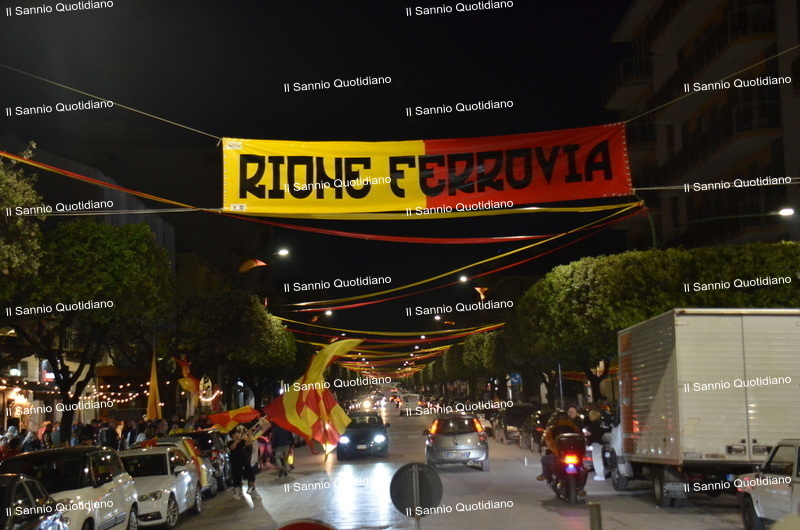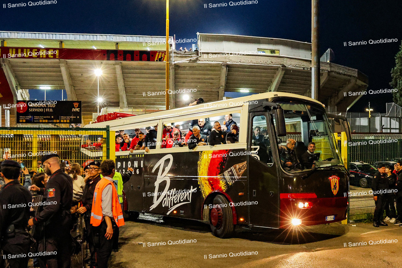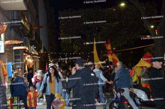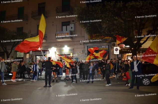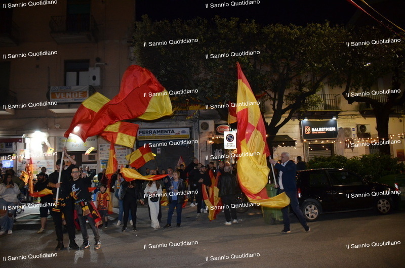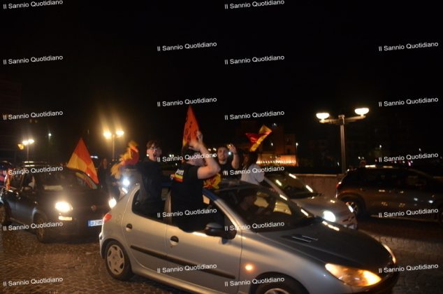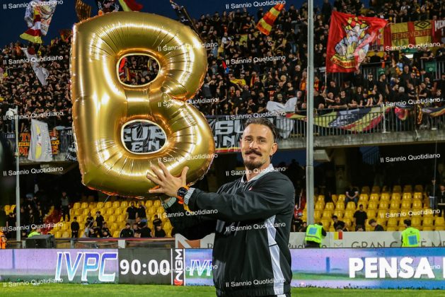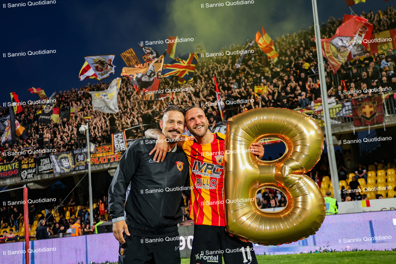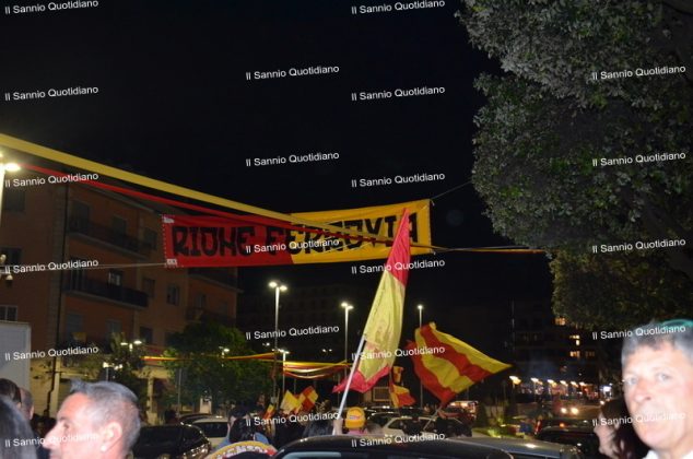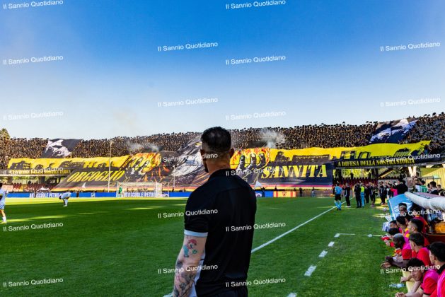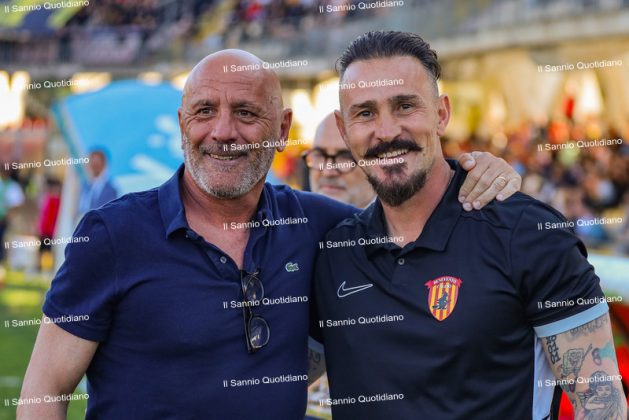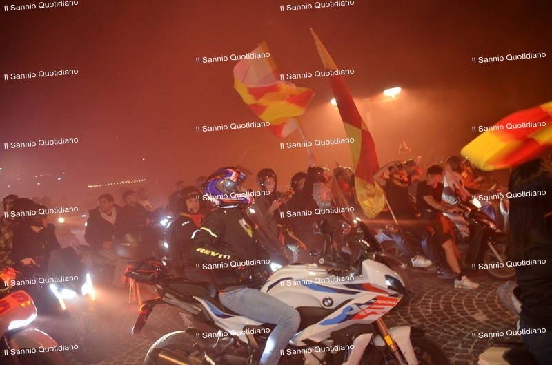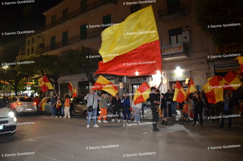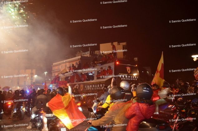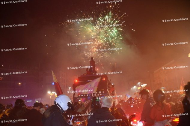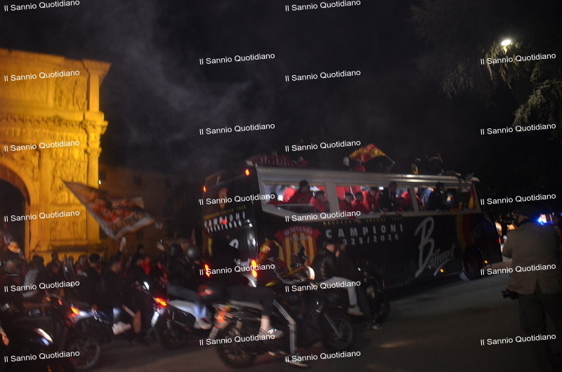 Un giorno atteso a lungo, tra le mille sfumature che hanno attraversato i volti di questi anni. Speranze, lacrime, sensazioni positive e drammi inconsolabili. L’entusiasmo di tutto il “Vigorito” nella sua serata più bella: è festa giallorossa, in uno stadio finalmente gremito e accomunato da una sola passione, quella per la Strega. Una serata lunghissima per i campioni del girone C, aperta dal primo abbraccio tra il presidente Oreste Vigorito e i suoi tifosi, nel giro di campo del patron giallorosso per salutare i sostenitori della Strega, tra gli applausi di tutto lo stadio.
