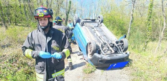 Incidente all’alba a Ponte, auto si ribalta: ferite due persone